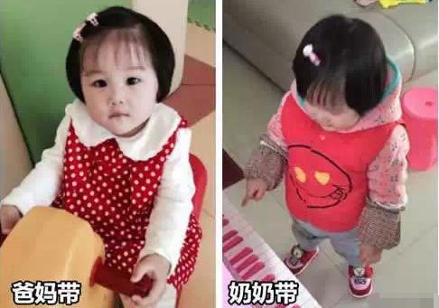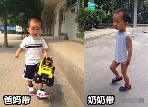 当然,父母带孩子和爷爷奶奶带孩子更多的差异还是表现在外表上,一起来看几组图片: